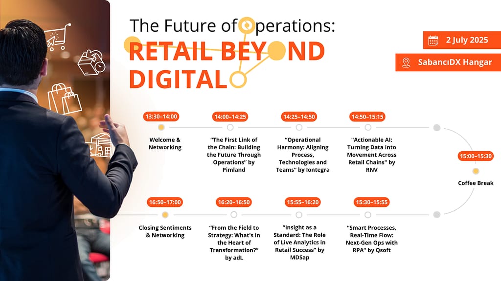 Be part of a growing community that’s reshaping how retail works! Join us on July 2 at SabancıDX Hangar, Istanbul for a dynamic afternoon packed with fresh perspectives on how retail operations are evolving. We’re looking forward to a day full of innovative ideas, real stories, and meaningful conversations.